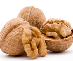 Walnuts are the rounded, single-seeded stone fruits of the walnut tree native to southern Europe, which is a member of Juglandaceae family. The walnut is enclosed in a green, leathery, fleshy husk which is inedible. Removal of the husk reveals the wrinkly walnut shell, which is in two halves, and encloses the kernel, which is likewise in two halves separated by a partition. The seed kernels are enclosed in a brown seed coat which contains antioxidants. The antioxidants protect the oil-rich seed from atmospheric oxygen so preventing rancidity (oxidative rancidity). Due to their high fat content, walnuts have a significant nutritional value. They are of the following composition: water: 5%, protein: 15%, fat: 63%, carbohydrates: 13%, fiber: 2%, minerals: 2%, Oil content: 50 - 65%.